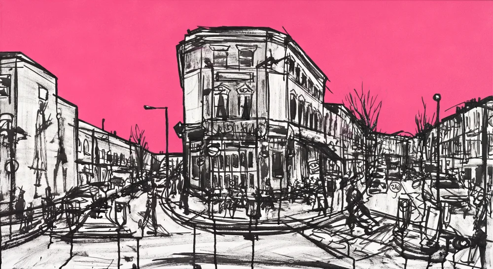 EDT in pink, 2019 | Spray paint & ink on canvas | 55 x 100 cm - Part of my City Punch series